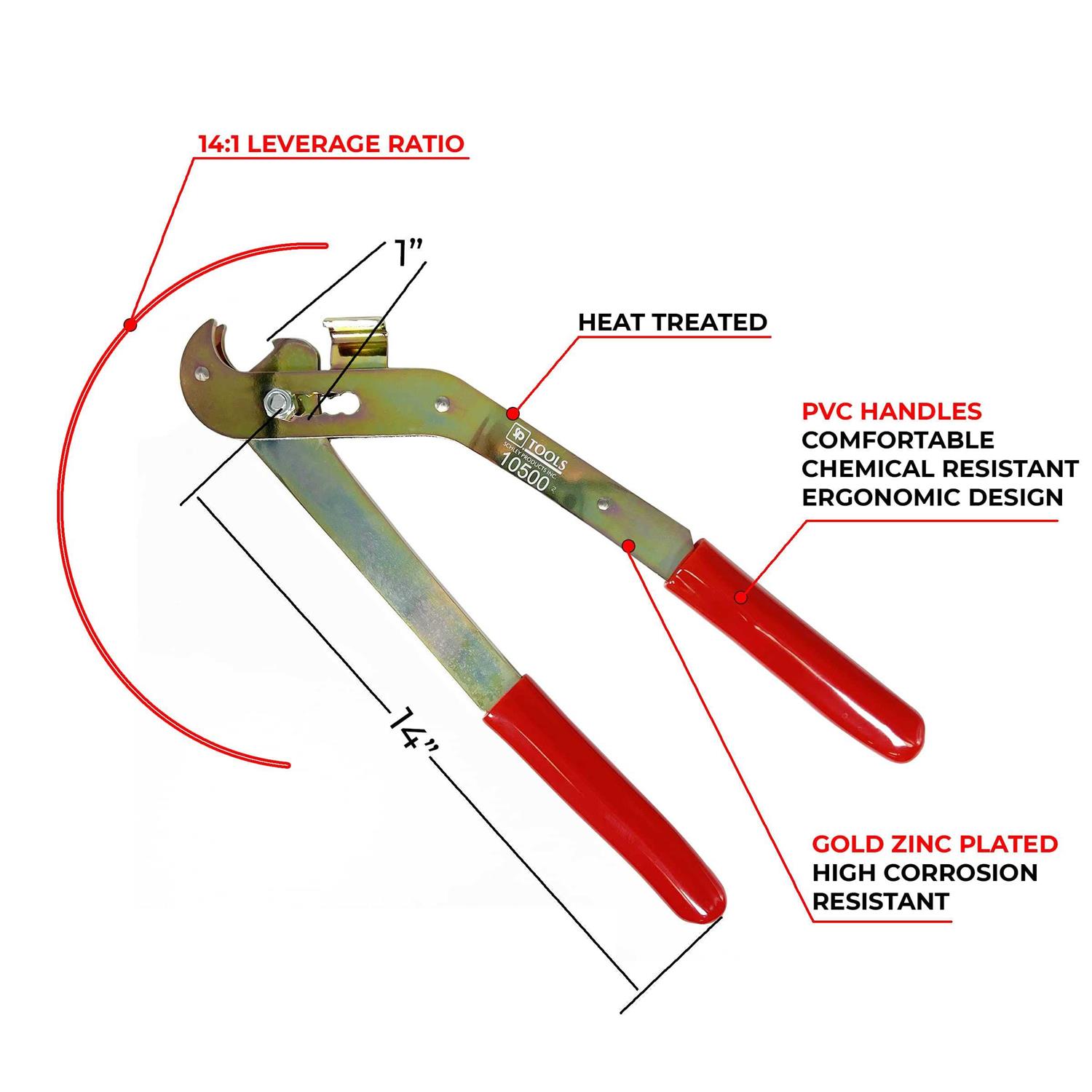 This set of angled pliers is heat treated and 14 inches in length to safely separate the mid-cable coupler from the cable end.