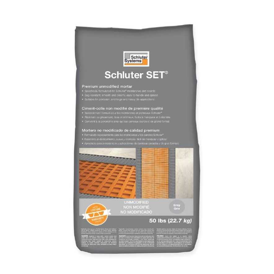 Schluter SET is an unmodified thin-set mortar used as a bond coat within tile assemblies. Easy to handle and spread while also sag resistant, this thin-set is ideal for both vertical and horizontal surfaces. Schluter SET works well with ceramic, porcelain and stone tile, even large and heavy tiles. Schluter SET can also be used for indoor or outdoor applications.