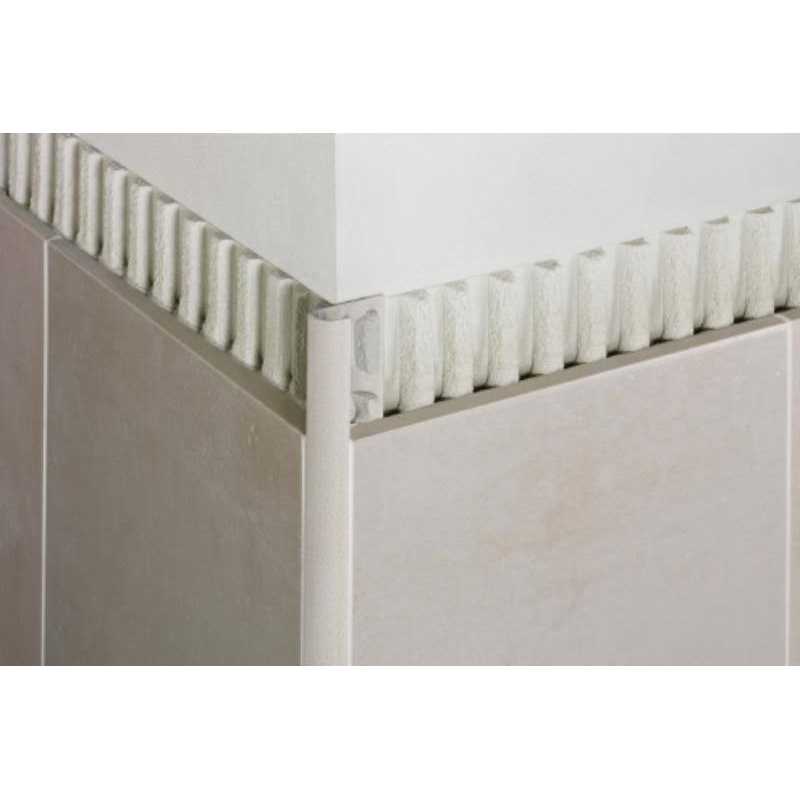 Aluminum Ivory is a finishing and edge-protection profile for the outside corners of tiled surfaces on walls. The vertical wall section of the profile provides a decorative finish and protects adjacent tiles. Other applications include transitions for dado coverings such as carpet, natural stone, or cold-cured resin coatings.