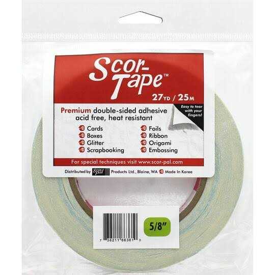Scor-Tape is an amazing product. It is a premium double sided adhesive, best on the market, acid free, heat resistant and incredibly sticky tape. It is the perfect permanent adhesive for card making, boxes, books and Iris Folding. Much easier to use than liquid glue. It can be used with embossing powders, foils, beads, glitter, ribbon etc. Unlike other tapes, Scor-Tape is paper backed which means you can tear it with your thumb & finger. No need for scissors or blade. Being paper, the backing is eco-friendly. All rolls are 27 yards long, so they are exceptional value.