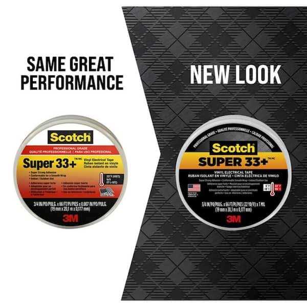 For trusted quality that stands the test of time, the pro choice is Scotch Super 33+TM Vinyl Electrical Tape. Long-lasting with superior adhesion and handling in a wide range of temperatures and conditions. Strong enough to stretch up to 250% without breaking. Designed for above/below grade, indoor/outdoor, low and high voltage applications. Proven reliability for all-around performance.