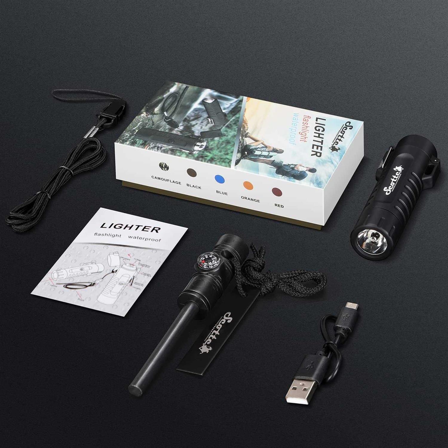 - and 5inch (5-in-1 Magnesium Fire Starter) packaged in a high-end gift box (Product list: one waterproof arcuate lighter flashlight