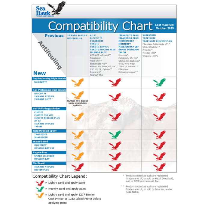 ColorKote is the next generation hull coating built with Sea Hawk DNA. Incorporating self-polishing, triple biocide, low-leaching chemistry, vibrant colors and multi-season performance, this is more than an antifouling paint. It’s hull protection done the Sea Hawk Premium Quality way. Triple Biocide Antifouling Power Econea*, Zinc Omadine, Copper Thiocyanate Vibrant Colors 6 Basic Colors can be mixed to create thousands of custom colors Multi-season performance in fresh, brackish and saltwater conditions California Air Quality Compliant 330 Grams per liter VOC Compatible with all hull types ideal for fiberglass, aluminum, and steel/iron hulls.