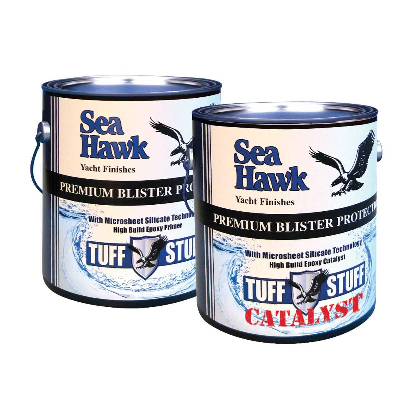 Tuff Stuff is an extremely high-build two-part epoxy primer that dries fast, enabling application of a complete barrier system and bottom paint in just two days. Using microsheet silicate technology, millions of microscopic sheets overlap and build a 100% water barrier that protects the surface from moisture and water penetration. Premium blister protection with microsheet silicate technology. Extremely effective for blister prevention on fiberglass, or as a bilge coating, because it is resistant to oil and water. As a universal primer, it can be used for corrosion protection on most metals below the waterline, and for priming any metal. Creates an overlapping barrier to eliminate any direct path for water migration. Can be applied at 10-15 mils dry film in one coat, using a brush, roller, airless or conventional spray. Fills deep scratches and gouges in a few coats and can be sanded within 8 hours to a smooth finish. Use over blistered fiberglass as a repair coat, and over unblistered fiberglass as a barrier coat. Protects metals from corrosion, including: aluminum, bronze, stainless steel, cast iron and lead – above and below the waterline. Excellent for priming props, shafts, keels, trim tabs, thru hulls and lower units. Highest build epoxy – Fewer coats needed. Longer window between coats makes Tuff Stuff easy to use. Reduced labor and less haul out time.