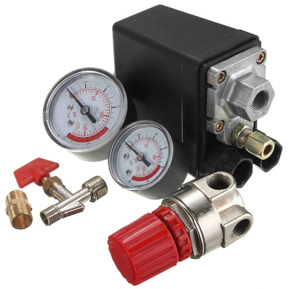 Secbolt Pressure Switch Manifold Regulator Gauges Air Compressor Pressure Switch Control Valve 90-120PSI