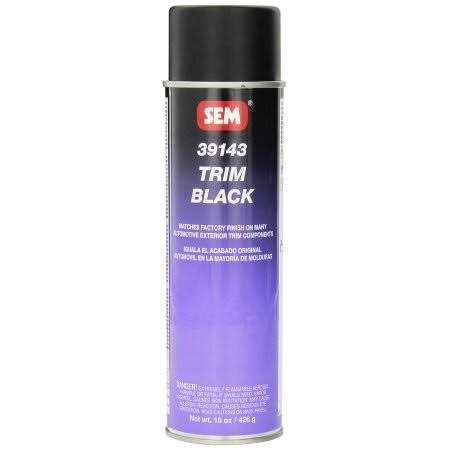 SEM Trim Paints are acrylic coatings formulated to match the OEM finish on automotive trim components. For use on plastic, steel, aluminum, stainless steel and chrome. The color is black and is meant for exterior uses. Has a nice and smooth satin finish. Comes in a 12 oz Aerosol can. Takes about 48 hours to fully cure.