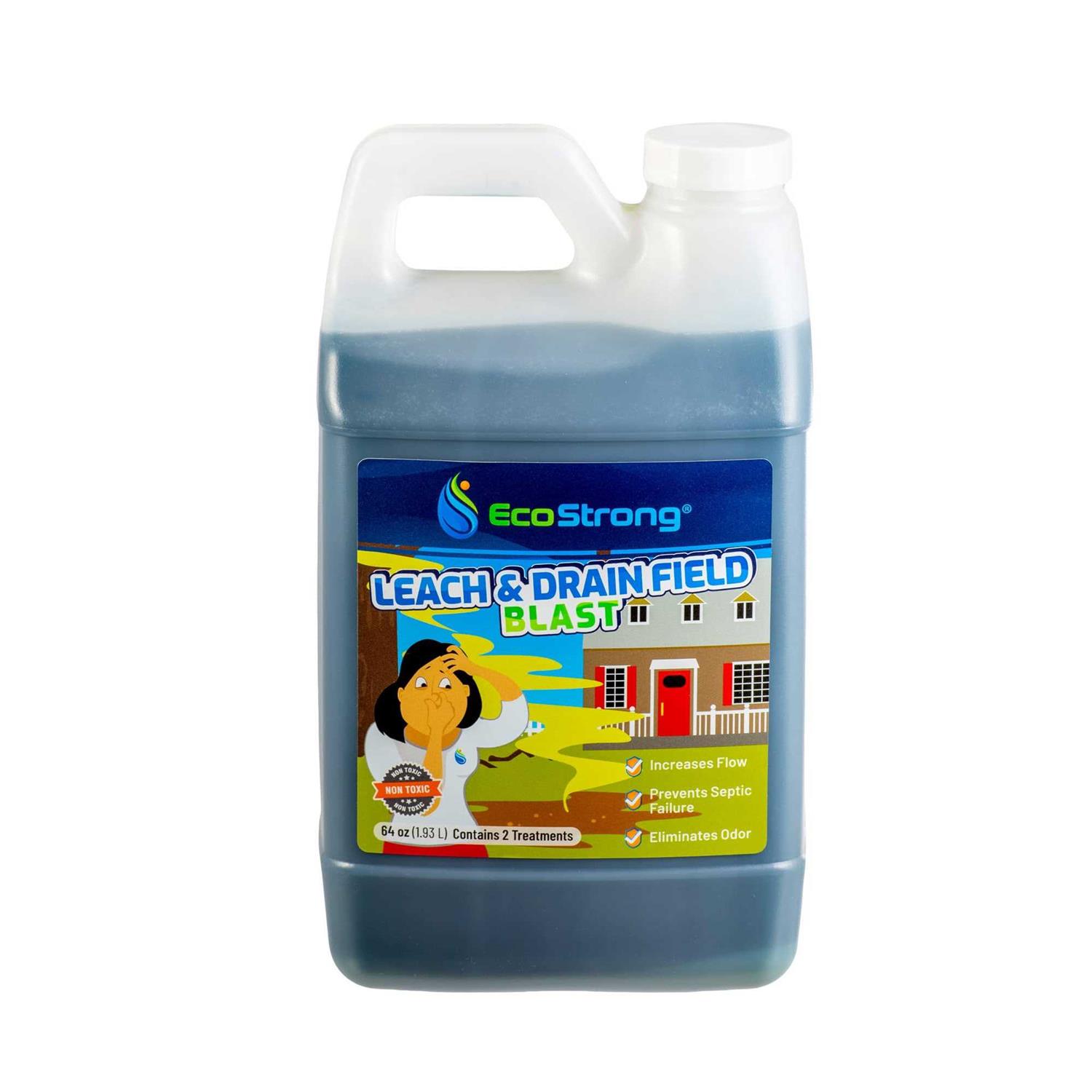 EcoStrongs Leach and Drain Field Blast increases flow and drainage in sluggish and/or clogged drain fields. It contains trillions of bio-enzymes that break down clog forming sludge, soap scum, paper, fats, grease, and more. Additionally the added enzymes will attack stubborn fouling bio-mats. Leach and Drain Field Blast also eliminates odors while working in harmony with the systems natural bacteria. Containing six times the amount of bio-enzymes as compared to the leading competitor Leach and Drain Field Blast will also reduce sludge increasing the time between pump outs. Age Group: adult.