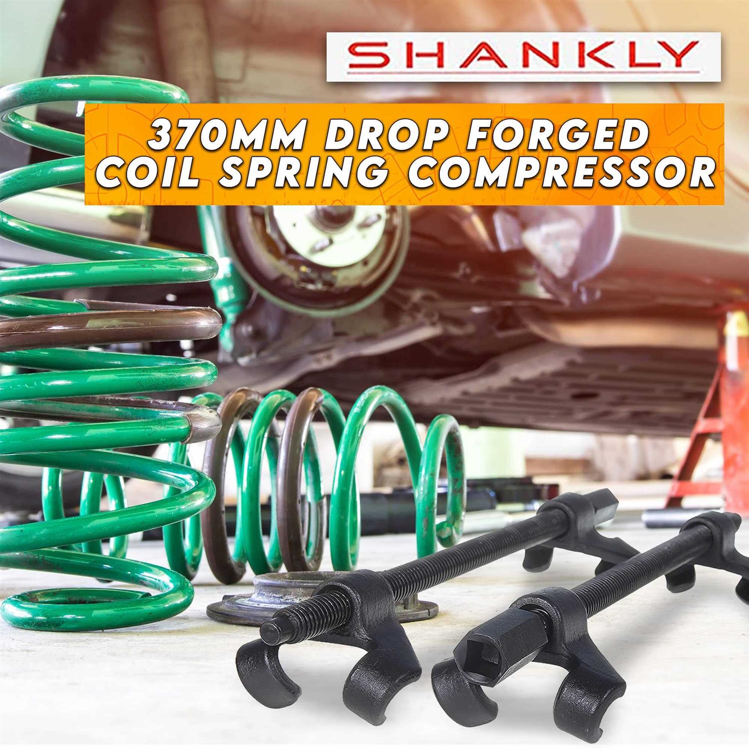 Suspension Tools by Shankly. Details:Shankly’s coil spring compressor kit is designed for use in limited space under the wheel arch. This spring coil compressor features specially crafted claws which enhance safety by wrapping around coils for a sure grip. Works well with springs between 90-370mm. Maximum jaw opening is 370mm. Actions speak louder than words. Shankly’s coil spring compressor tool is built with heat treated, high quality CR-V steel to ensure you obtain a professional job performance everytime.
