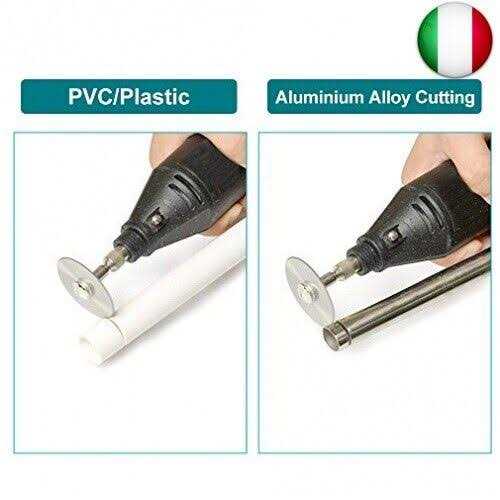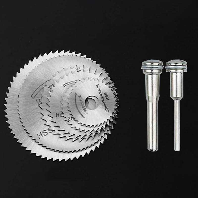 1. Widely used – There are 6 small steel saw blades with a clamping range of 3.175 mm (1/8 inch) and a 6 mm shank, suitable for rotary tools of most power and carving tools. 2. High quality: high-strength HSS, durable, sturdy and durable. It is based on the unique, advanced and scientific sawing principle to prevent problems from other saw blades. 3. Size of the high speed steel blades: 22 (25.32.35.44.50) x 0.8 mm x 6.35 mm diameter; 2 mandrel drill blades; the high speed steel blades can be used for cutting wood, plastic, fibres, glass, aluminium, alloys, soft metal and more. 4. The high speed steel saw set is ideal for DIY, wood working, home repairs, crafts, hobbies, jewellery, lapidariums, fashion making, etc. 5. Note: only cut objects indicated in the description and not hard objects such as steel; and hold the rotary tool firmly and carefully in the hand to avoid injury. Product Description High speed steel saw blades: Deterrent hardened at a temperature of about 1205 ~ 1215 °C, hardness 61 ~ 66.2 HRC Special hardening and abrasion resistance ensure maintenance and prolonging the life of the saw blades. 1. The saw steel blades have a diameter of 3.175 mm (1/8 inch) and a size of 6 mm (1/4 inch), are compatible with most rotation, pneumatic tools and drop sanders, especially with the Dremel brand. 2. Easy installation. Perfect for DIY projects, DIY enthusiasts and people work on wood, aluminium, plastic and DIY crafts. 6 HSS steel saw blades and thorn drill blades for rotary tools: – Blade Size: 3.2 mm (1/8 inch) and 6 mm (1/4 inch) – Inner diameter: 6.35 mm – Thickness: 0.8 mm – Weight: 100 g / set (including packaging) <