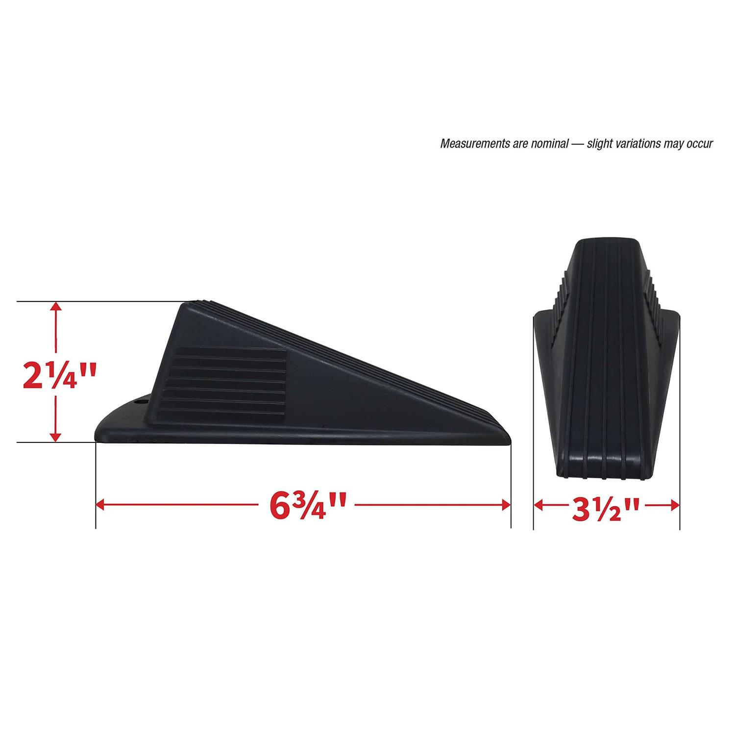 - 7 inch long x 3-1/2 inch wide black hard plastic wedge is 2 inches tall