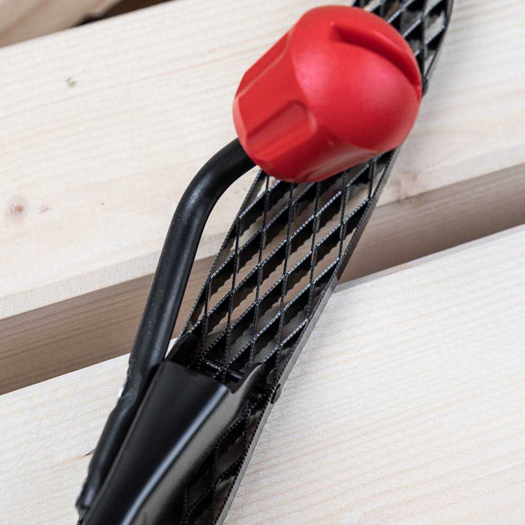 The Shinto Saw Rasp is a 10 inch flat rasp made from 10 hardened teeth saw blades held together by rivets with both coarse and fine sides with the teeth oriented to cut on the push stroke. The double-sided which enables one to change the coarse & fine sides whenever needed. Features a new TPE Durable Plastic Handle for improved grip in all conditions. The teeth are designed to help prevent clogging and to be easily cleaned should the need arise. While the tool may seem odd to someone more used to traditional rasps, it works so well it will soon be one of your favorite tools. Suitable for any shaping task, from rough to fine work.