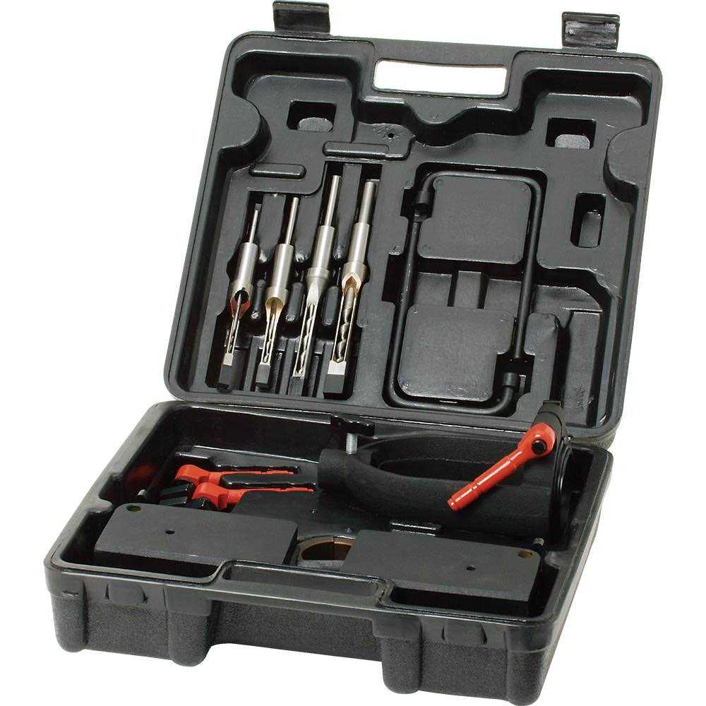 Bushing sizes include: 2.945 in. O.D. x 2.600 in. I.D., 2.600 in. O.D. x 2.366 in. I.D., 2.366 in. O.D. x 2.170 in. I.D., 2.600 in. O.D. x 2.000 in. I.D., 2.600 in. O.D. x 1.880 in. I.D. and 2.600 in. O.D. x 1.570 in. I.D. Just match your drill press quill diameter to the nearest ID bushing dimension. Chisels have 3/4 in. O.D.