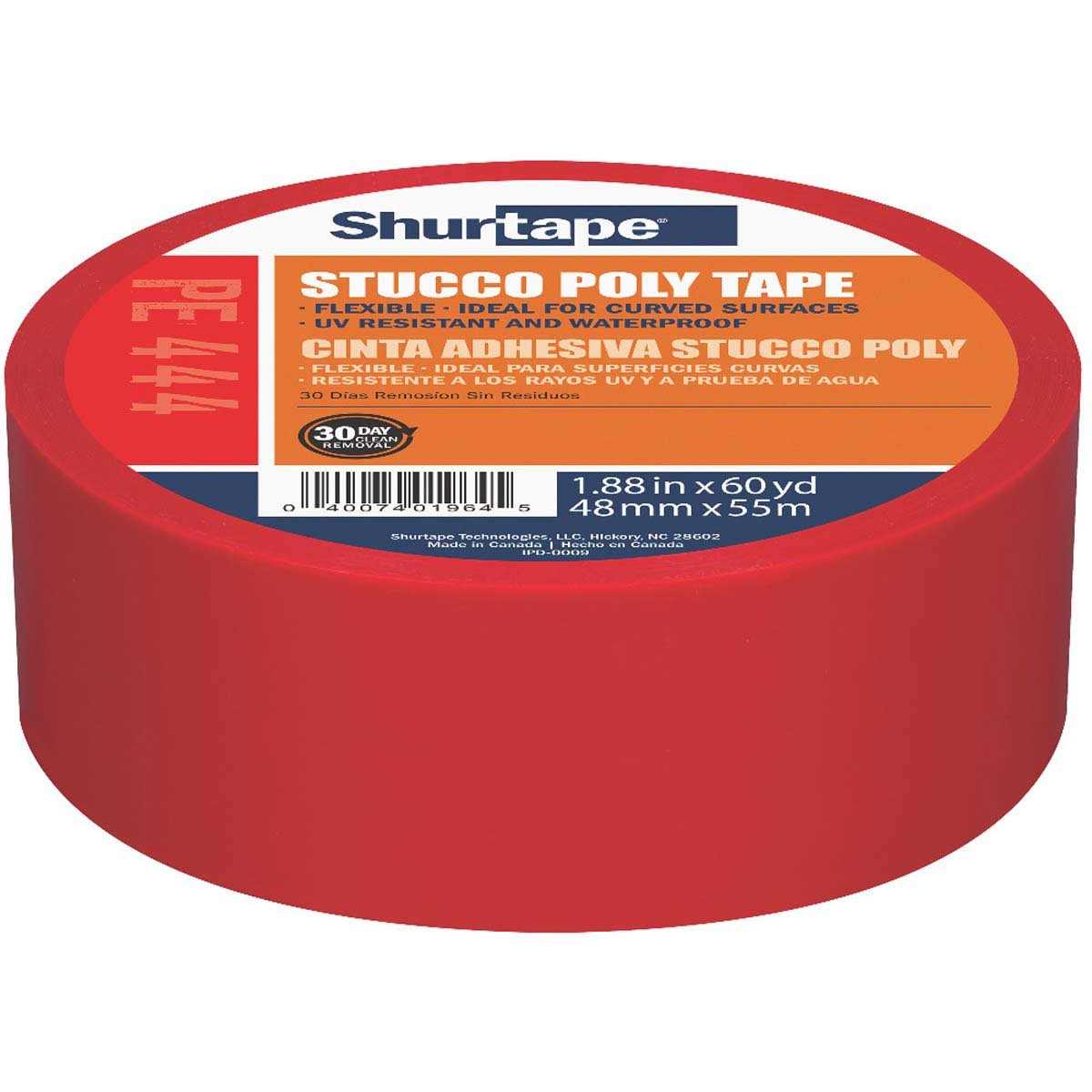Shurtape 444 UV-Resistant Stucco Red Masking Tape – 48 mm x 55 m is a UV-resistant polyethylene film tape used to mask surfaces, such as windows and doors, during stucco application and painting. PE 444 is a stucco masking tape engineered for outdoor use.