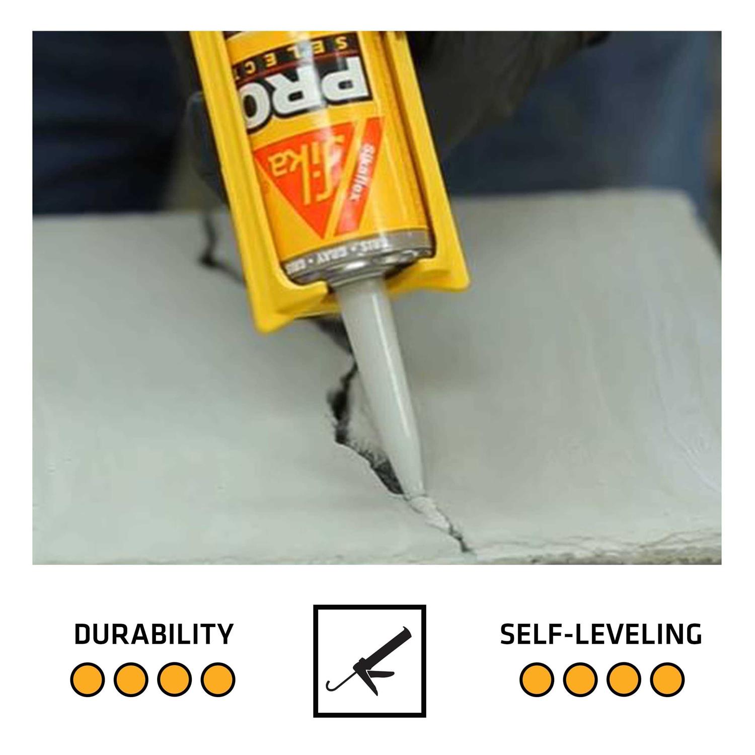 This is a polyurethane sealant for permanently repairing cracks in horizontal concrete surfaces. It can be used in cracks up to one inch wide and provides long term durability. It’s elastic technology formulation allows the sealant to remain flexible and move with the crack.