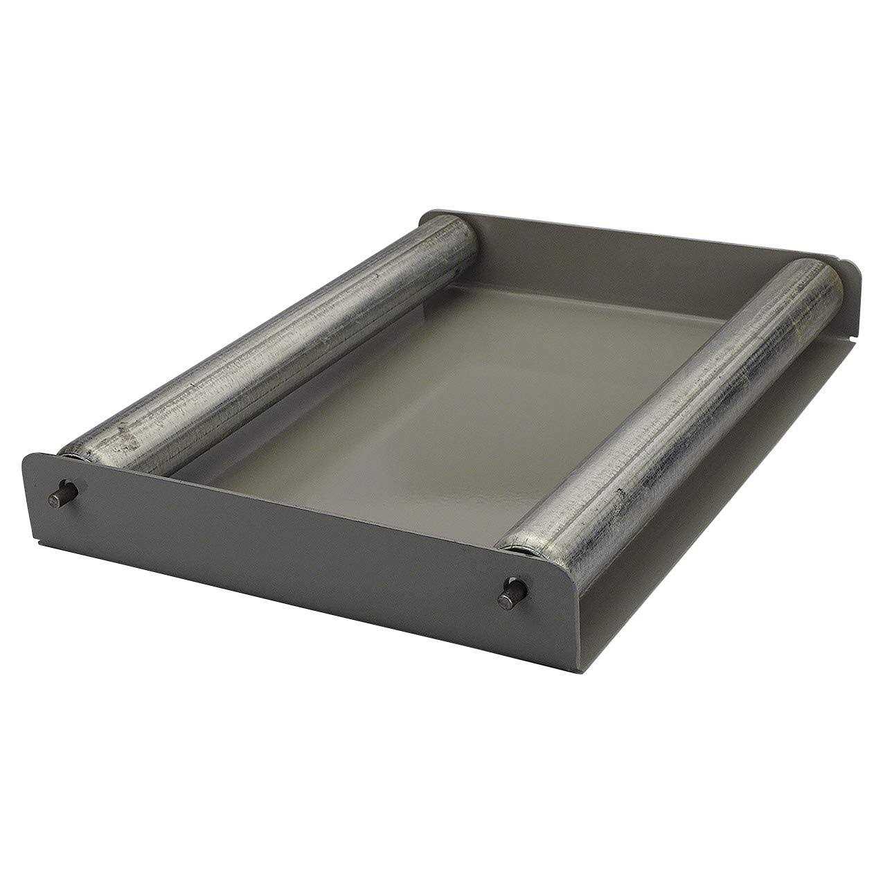 Makes blasting, painting, or pinstriping auto rims easy! Before blasting, insert rim roller onto cabinet grid. Place rim on rollers, aim power gun at rim, and manually rotate rim. Ball bearing rollers and 14 gauge steel construction. When painting or pinstriping, rotate rim and apply paint. 10″ wide x 13″ deep.