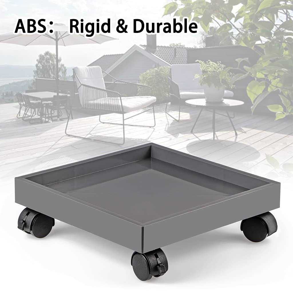 /b br This plant caddy is consist of 4 durable rolling wheels and sturdy structure, which can make it easily carry up to 110 pounds weight around, br It can be used for moving garden pots, heavy plants, large potted trees, large vases, whiskey barrels, or heavy trash, br also plant dolly can be freely moved on house floor, even on the carpet, soil ground and lawn. br The rolling plant stand with black color will nicely compliment your patio, garden, yard . br br Specifications: /b br Material: /b ABS plastic br Color: /b Grey br Overall Height: /b 3″ br Max Loading: /b 110 lbs br Package Includes: /b br 1 x Square plant Caddy br 4 x Wheels (2 of them with brake) br Installation: /b br Step 1. Make wheel alignment the hole br Step 2. Press the wheels down br Step 3. Until hear the “Click”, it is complete br