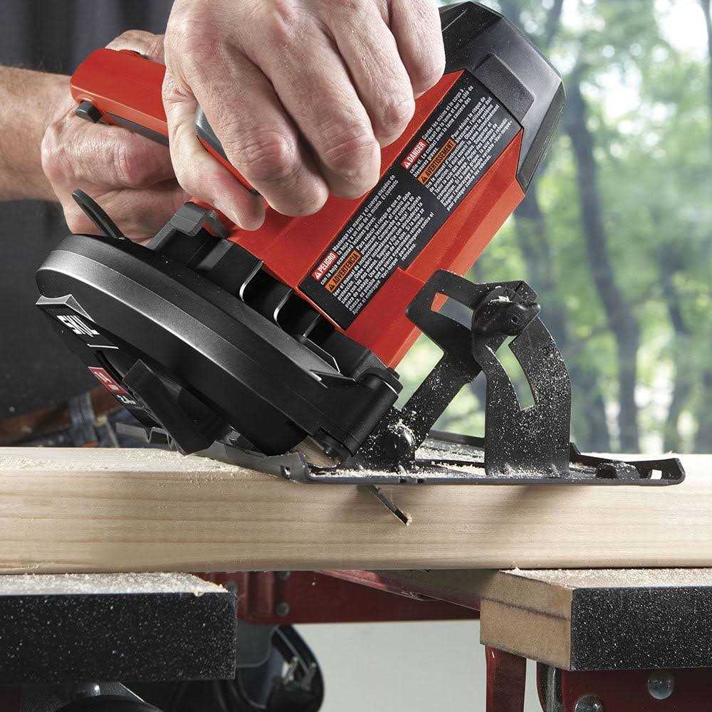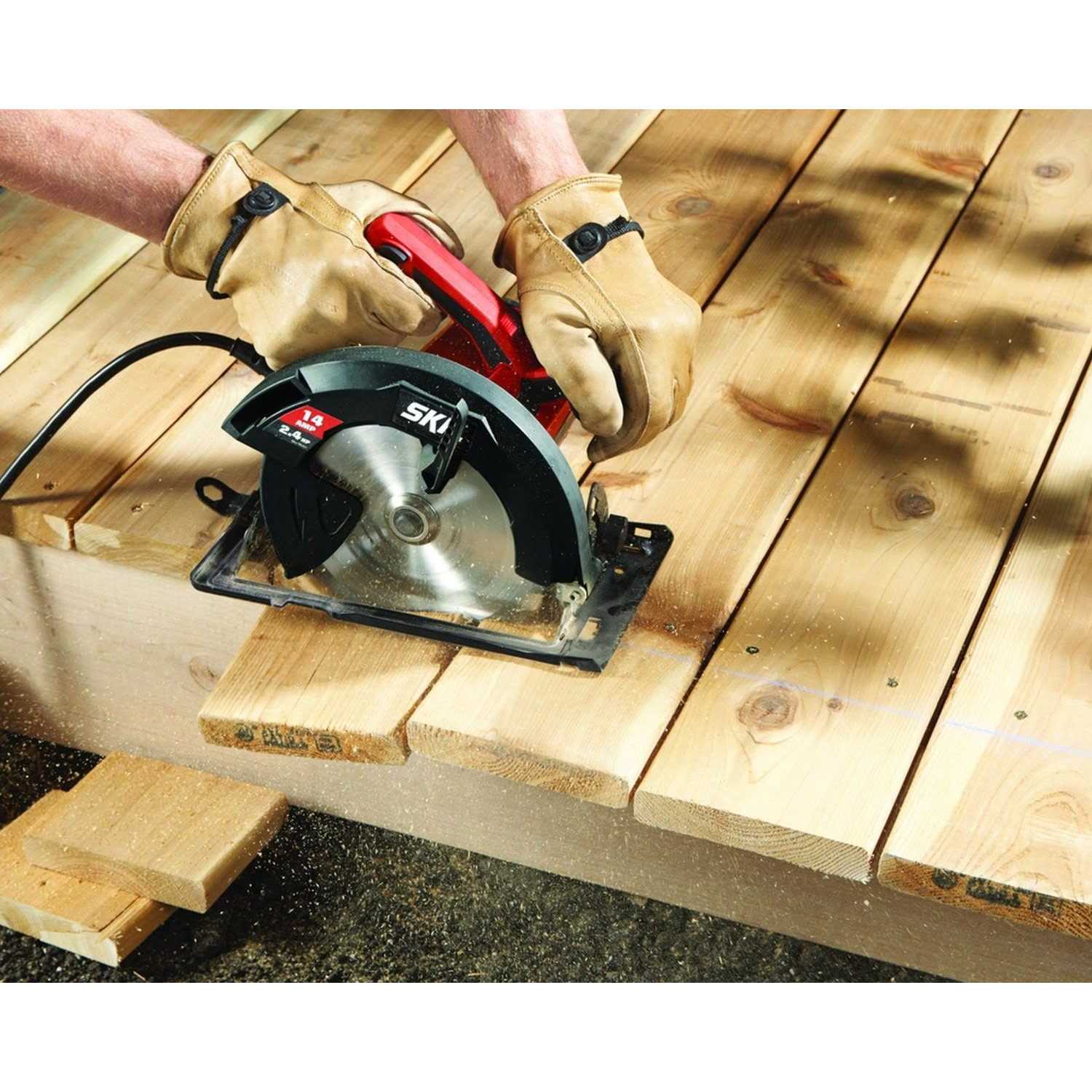 Need a more powerful circular saw for weekend or DIY projects? The Skil 5180 14 Amp 7-1/4 In. circular saw slices through 2 x 4s and cuts plywood down to size. The integrated dust blower keeps the line of cut sawdust free so you can get the job done easily and accurately. The 51 degree bevel, with positive stop at 45 degree, gives you a wider variety of angle and miter cuts. At 7.2 Lbs., it’s lighter than its predecessor, and has been updated with a spindle lock for easier blades changes using the on-tool wrench. The 5180 includes a 24 tooth carbide blade.