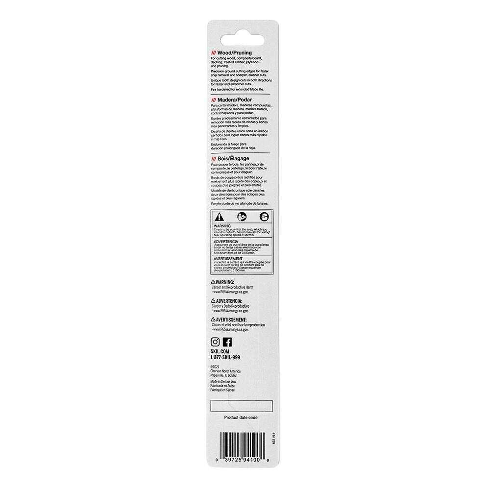 The Skil 94100 Pruning Reciprocating Saw Blades are designed for extremely fast cutting in wood, pressure treated lumber, wet wood and composition board. These blades feature a fleam ground design that let you cut on both forward and reverse strokes. With 4-5 TPI and 9 inches in length, and made of strong and durable high carbon shell with fire-hardened cutting edges, the Skil 94100-05 blades can also be used for pruning. Five blades are included in the pack. These blades fiat all Skil and most other major brand reciprocating saws.