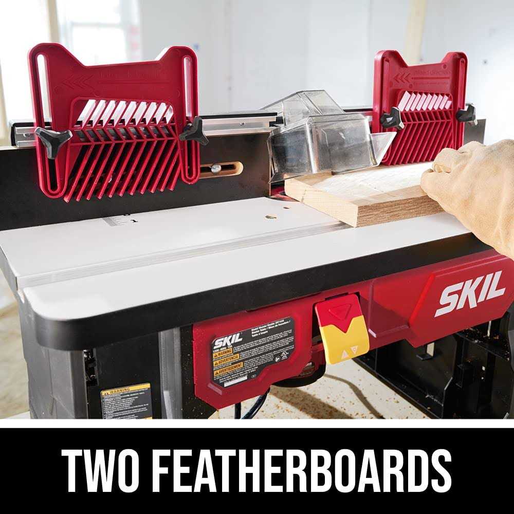 Compatible with many major router brands, the SKIL SRT1039 Router Table brings convenience to the job. Get started with the quick and easy router clamp that attaches your router to the underside of the table. With the above table router lift, you’ll get convenient access to adjust the height of the router bits without reaching underneath the table. This router table is also equipped with a dual-sided integrated router bit storage system to store all your bits in a central location. Guiding the workpiece is smooth with the smooth laminated MDF work surface and two feather boards that reduce kickback. The rigid aluminum router mounting plate includes an aluminum miter gauge slot, a router clamp, and a 24? fence to guide longer work pieces. Look no further as this all-inclusive SKIL Router Table will become your benchtop staple for everything routing.