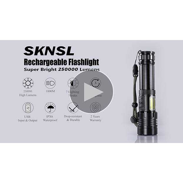 SKNSL Rechargeable LED Flashlights High Lumens: 900,000 Lumen Super Bright Flashlight, 7 Modes with COB Work Light, IPX6 Waterproof, Powerful