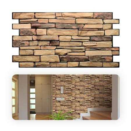 Smart Profile 3D Wall Panels for Interior Wall Decor Non-Adhesive PVC Beige Faux Stone Wall Panels 2 Pack(10.6 Sq ft) Wall Covering Panels for Home
