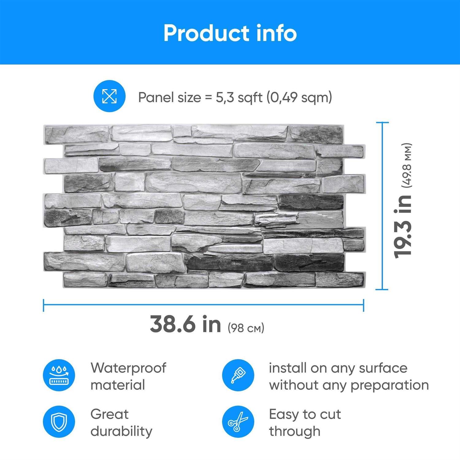 Smart Profile – 3D Wall Panels for Interior Wall Decor in Silver Slate Style, 20 Pack, PVC, (Cover 106 Sq ft)
