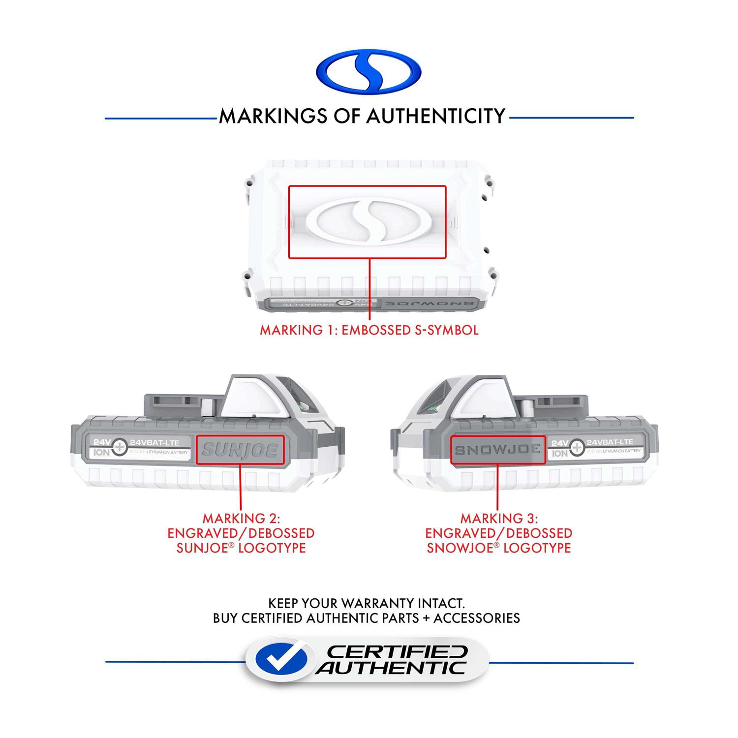 - [FOR USE]: With all Snow Joe and Sun Joe cordless 24V iON+ models.