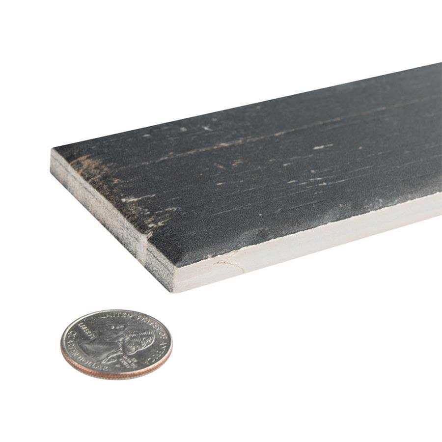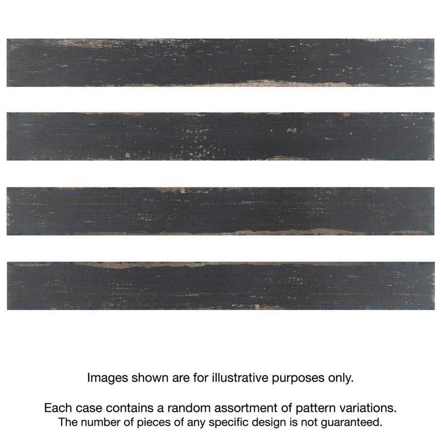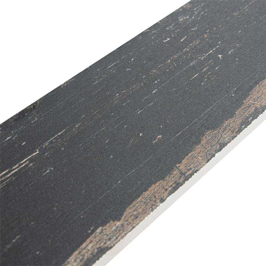 Porcelain Floor and Wall Tile is a breathtaking addition to our collection of wood-look tiles. Crafted in Spain, the soot black glaze features a meticulously detailed grain accented in shades of tan. To add further contrast and depth, this tile has subtle bumps and grooves that echo the texture of real wood. The finishing touch on this small plank is the imitations of scuffs and spots, which gives this tile an antiquated appearance reminiscent of distressed painted wood. This extruded porcelain tile has high variation for a one-of-a-kind look that can only be achieved through the partially handmade process. This tile offers endless design possibilities when paired with other products in the Retro series. This impervious, matte tile will look great in all indoor and outdoor locations, including walls, floors and patios.