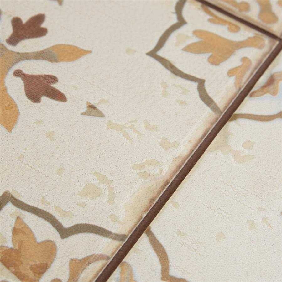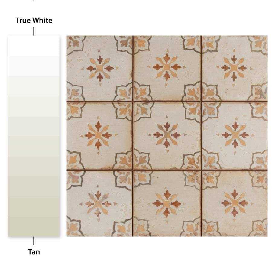 The SomerTile Pamplona ceramic floor and wall tile, 13″ x 13″, marron captures the beauty of sun-drenched Spanish streets. These ceramic slabs feature nine squares with scored grout lines in between. These squares have an antique cream, matte glaze that offers an old-world feel. The unique floral designs offer the look of floral, stenciled tile, in a neutral color scheme. Distressed markings help further convince that this is an aged, Rustic piece. Designed by interior architect and furniture designer Francisco segarra, this tile is a true reflection of vintage industrial design. Use this tile in a variety of interior installations.