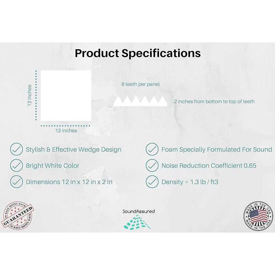 Acoustical Treatments by SoundAssured. Details:Increase your sound quality without breaking the bank! SoundAssured soundproofing acoustic foam is great for sound deadening at home or in a professional studio. This product is used for low, mid, and high frequency ranges to aid in blocking sound and stopping echoes inside your room. Smaller panels offer more choices for placement and design; and are ideal for spot treating any environment. Start your project today by ordering SoundAssured Acoustic Foam!