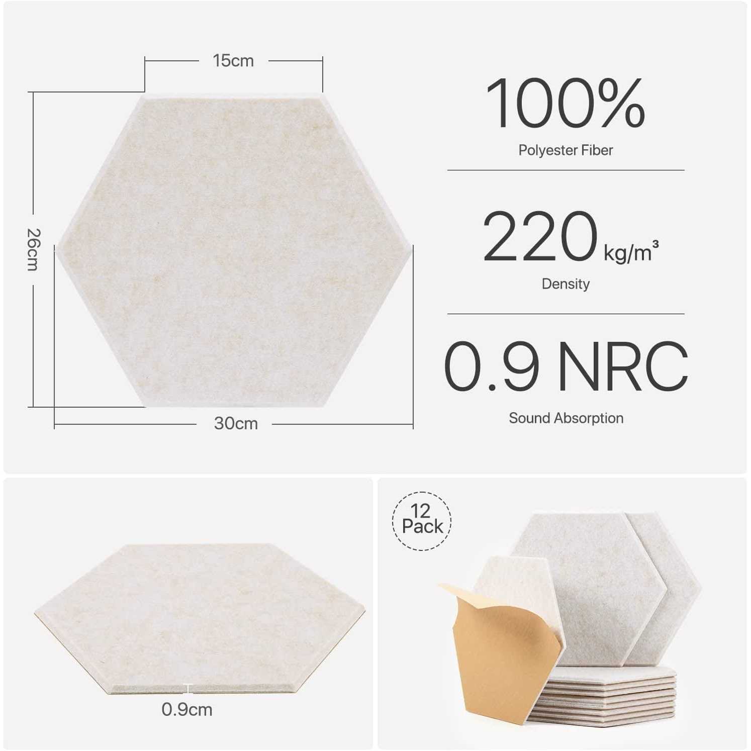 Kuchoow 12 Pack Soundproof Wall Panels – Self-Adhesive Sound Proofing Panels-High Density Hexagon Acoustic Panels for Acoustic Treatment, Home, Studio, Gaming