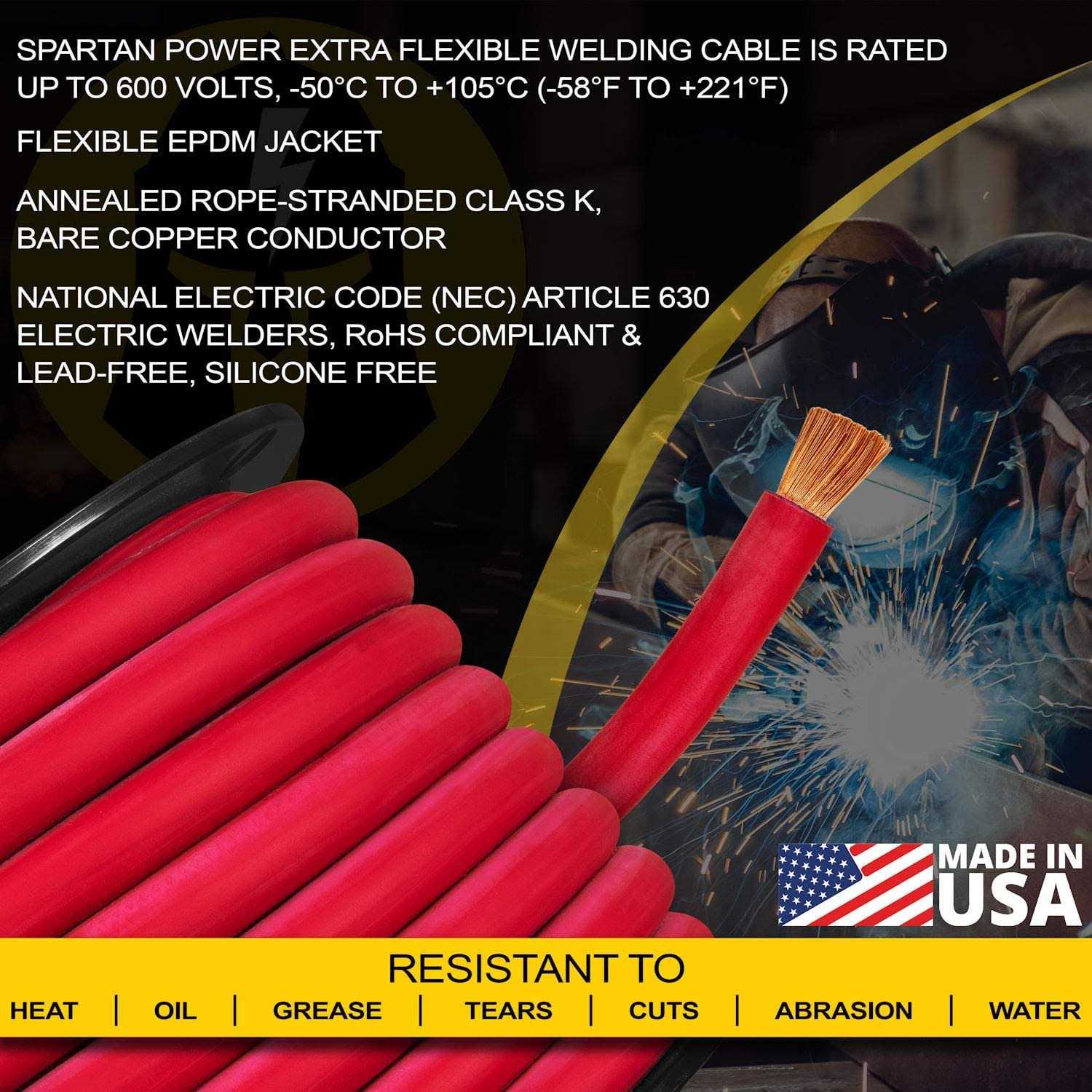 Spartan Power Welding Lead & Car Battery Cable Copper Wire – DIY Bulk Car Battery Cable, Pro American Made Automotive Grade Battery Cable – 600 Volt