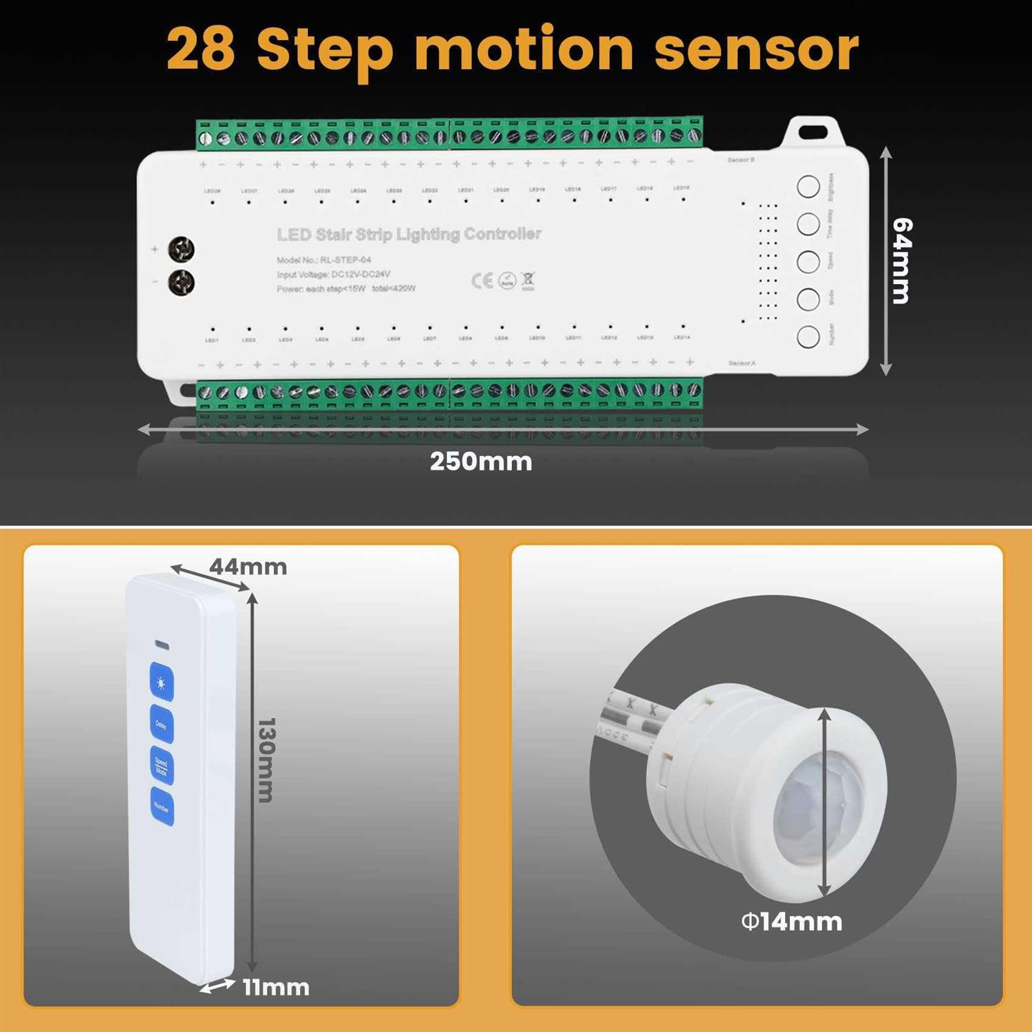 Srora LED Stair Light Controller with Motion Sensor 28 Steps Indoor LED Stair Light Controller