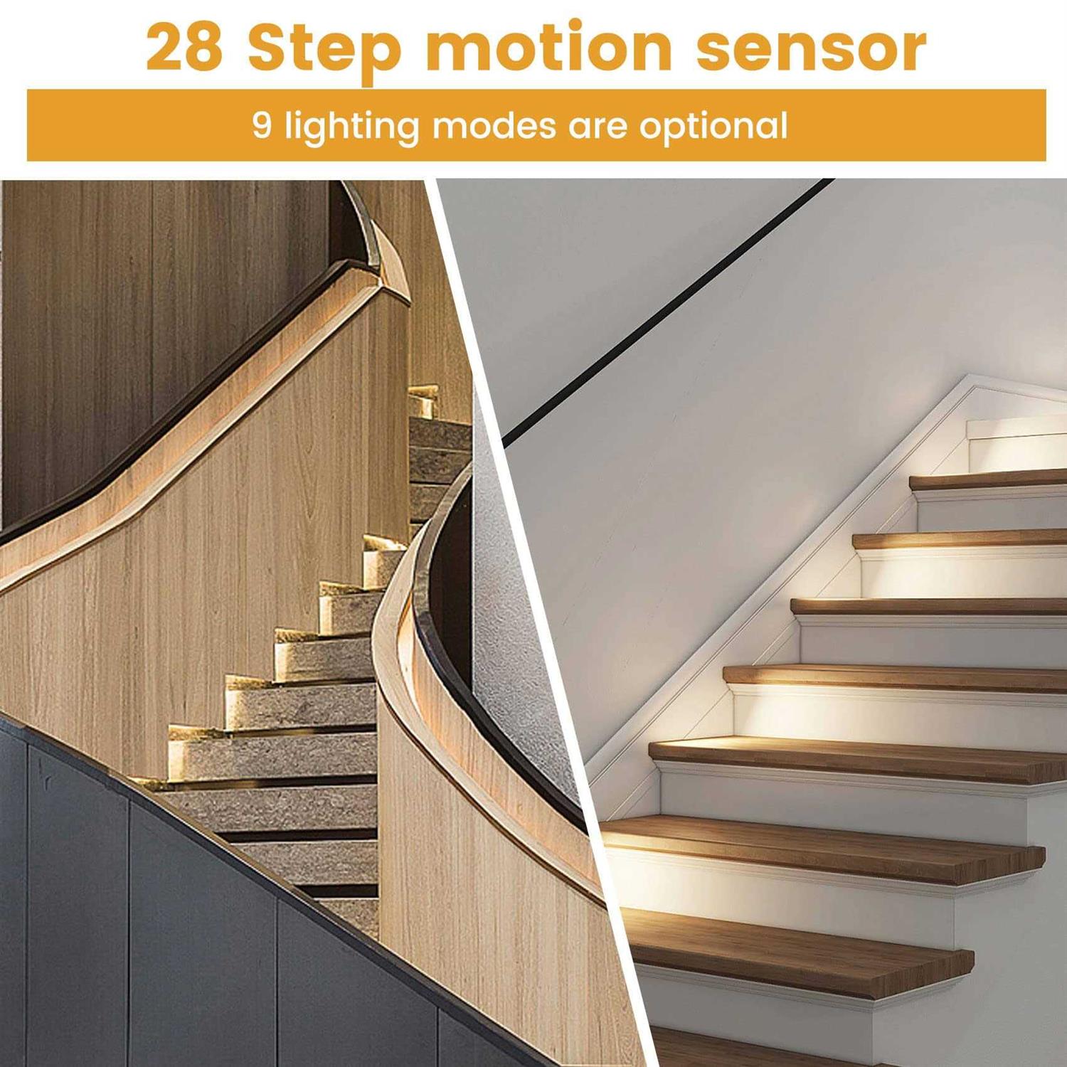 srora Stair Lights Motion Sensor, LED Stair Light Controller, 28 Steps Indoor LED Stair Light Sensor, 9 Lighting Modes Adjust
