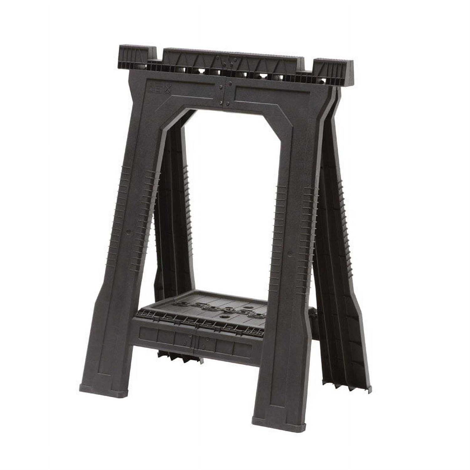 Together these Stanley sawhorses can hold up to 800 lbs. It’s designed with a V-groove to hold various materials in place. The sawhorses are lightweight for lightweight transport. A tray is built into the design to hold tools.