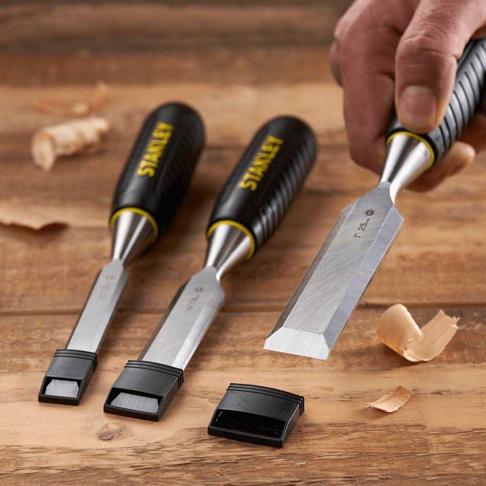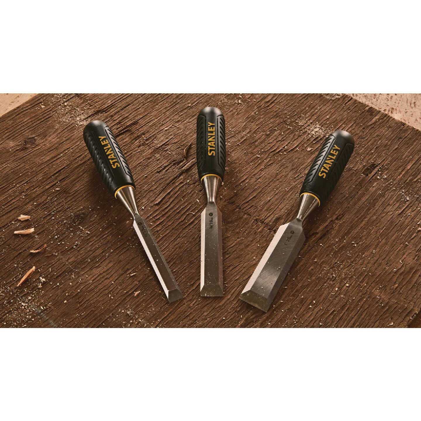 Get consistent, expert-level results with this 150 Series Wood Chisel Set. A staple in professional workshops, these chisels deliver the longevity you need with heat-tempered, carbon-steel blades and lacquer coating for corrosion resistance. The chisels are built for dependable, routine performance with precision-ground blades on all faces, a comfortable, shock-absorbing handle, and a short series blade for strength and control.