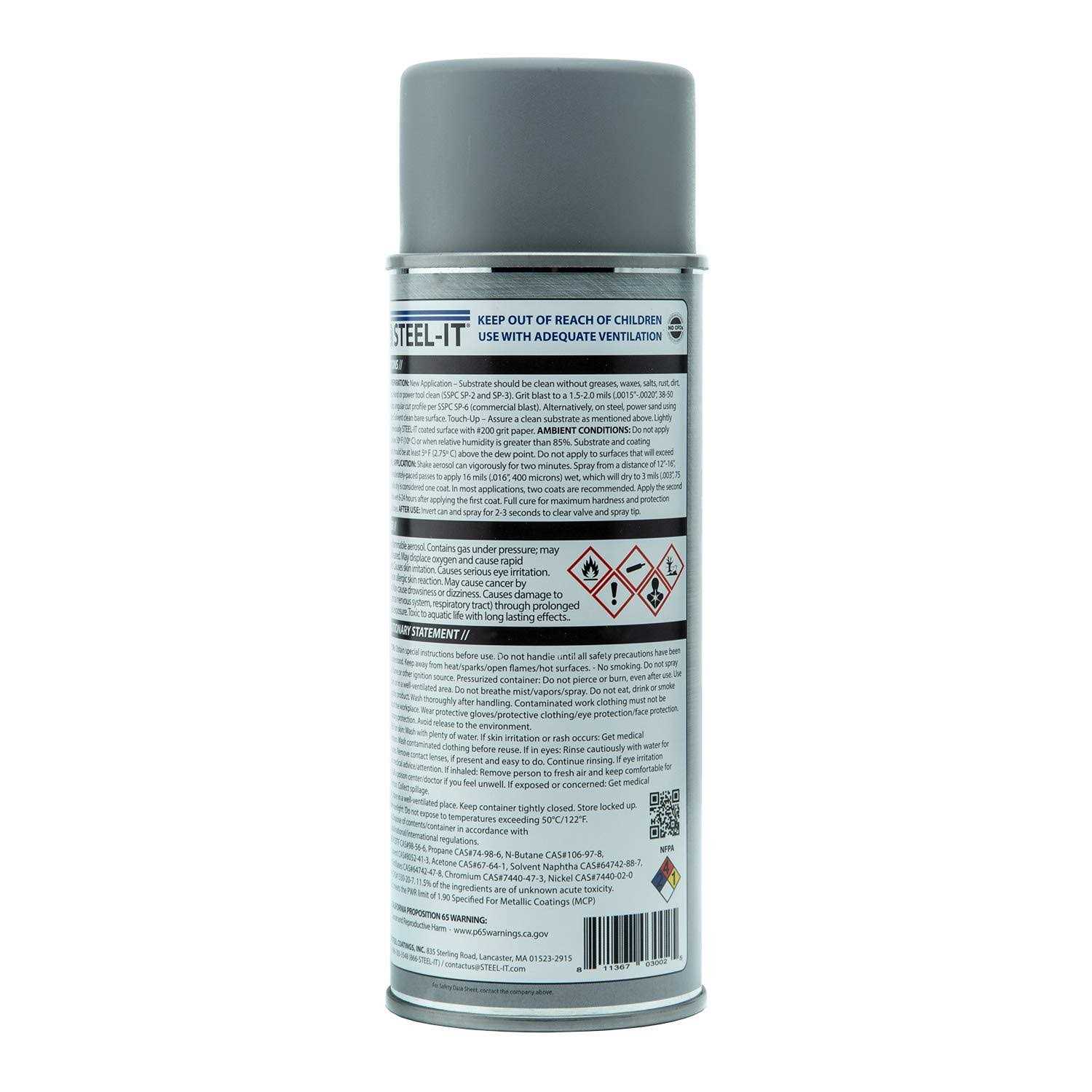 Industrial Paint Coatings Engineered with Stainless Steel for Superior Protection Protects Against the Destruction and High-Cost of Corrosion Use on Food Processing Equipment Where USDA Approval for Incidental Food Contact is Required Incredible Aesthetic Appeal and Durable Finish 6 Cans of Steel Gray As with all STEEL-IT Brand Coatings, STEEL-IT Polyurethane Aerosol products feature custom-engineered, 316L stainless steel flake and provides superior protection against corrosion, abrasion, salt, alkalis and other chemicals. The coating provides the added benefit of being weldable, UV-resistant, and USDA compliant for incidental food contact. STEEL-IT Polyurethane withstands high-pressure washdowns and detergents without chipping or flaking, a critical feature in so many applications across industries.