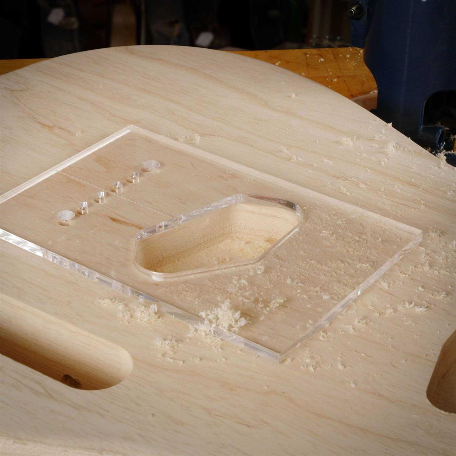 Special bits for templates! Extra-long carbide-tipped router bits produce clean, precise body cavities when used with routing templates. The ball-bearing guide matches the cutting diameter, and the long shank allows multiple-pass routing for deep cavities. The 1/2 inch diameter bit is recommended for most of your routing chores, and comes with 1 bearing. Use the 3/8 inch cutter only for routing corners that need the tighter radius, it comes with 2 bearings. Shank diameter: 1/4 inch (6.35mm) Cutting height: 1/2 inch (12.7mm) A heat-resistant sleeve (not shown) holds the bearing in position. This will greatly extend the life of the bearings and reduces the risk of a bearing “blow-out”.