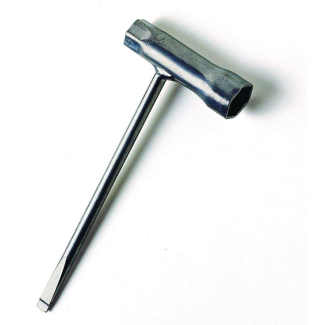 This heavy-duty three-in-one tool features a wrench on one end and a screw driver on the other. This tool can be used to remove spark plugs or chainsaw bars to adjust saw chains.