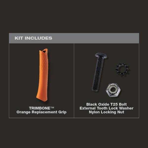 The STILETTO 10oz TRIMBONE Hammer with Smooth Steel Face and Curved Handle is designed for finish with specialized features. This titanium hammer is 45% less weight and hits like steel. The compact D-Face and Trim Claw are ideal for tight spaces. The TRIMBONE also features a steel face and a replaceable grip, available in 5 colors. extending the life of the hammer and providing a personal touch. The 180° side nail puller is ideal for 2D-10D nails but has the power to pull up to 16D. The STILETTO TRIMBONE Orange Replacement Grip extends the life of your hammer while providing a personal touch. It is easy to install and remove on the jobsite with minimal tools. The TRIMBONE Replacement Grip is available in 5 colors and includes a Black Oxide T25 Bolt, Nylon Locking Nut, and External Tooth Lock Washer.