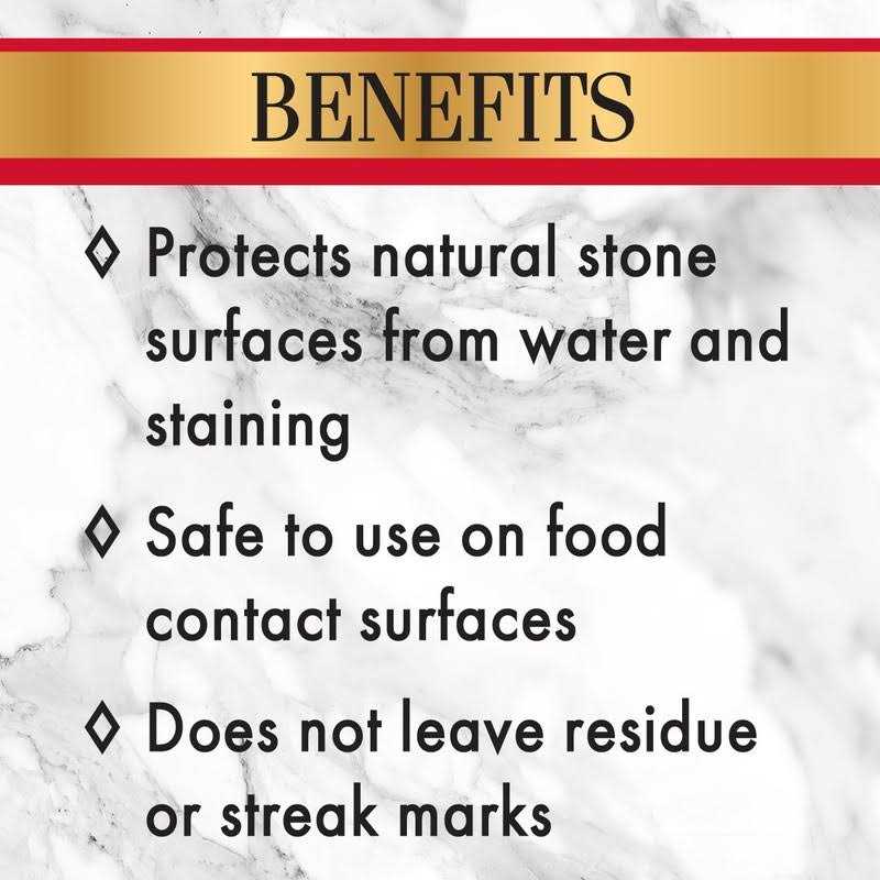 Protects natural stone surfaces from staining. For stone countertops, floors, walls, vanities and even grout. Also for sealing all types of masonry, stucco, concrete and sanded grout. Has special blend of polymers that bond to the stone and creates a water and oil repellant membrane to prevent staining and allows the stone to breathe and release moisture vapors. Safe for interior and exterior use and is UL Classified for slip resistance. Coverage varies depending on surface.