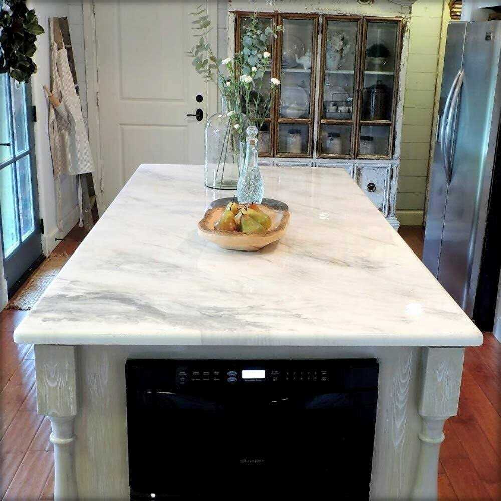 Watch our how-to videos to learn to make your own amazing surfaces! The countertop epoxy resin kit is formulated for this purpose and is will cover 40+ square feet of surface for both the Color FLOOD coat and Clear FLOOD coat ( about 3oz of Stone Coat Countertop Epoxy per Square Foot per coat). If you are doing a Wood Slab you will need to seal with a thin layer of Stone Coat Countertop Epoxy before the flood coating. MDF needs no seal coats. Our Epoxy Resin Kits come in multiple sizes: ½ Gallon kit for a bathroom to do 10 sq ft. 1 Gallon kit for a small kitchen that’s 20 sq ft. 2 Gallon kit to cover between 40-50 sq ft. (Most Popular) 4 Gallon kit is meant for a large kitchen that’s 60 sq ft. Do not pour this material over 1/8″ per coat, for deep thick pours use our casting resin. Countertop Epoxy Resin Made Easy with our Half, One, or 2 Epoxy Gallon Kits Do you want to add stunning flair to your countertops, or simply refresh the look of your kitchen or bathroom for a fraction of the usual cost? Look no further than our gorgeous, easy-to-use epoxy resin gallon kits. Our countertop epoxy is Food safe, UV resistant, heat resistant and our epoxy resin is designed to create the look of expensive granite or marble right over your existing countertops while staying budget friendly. Our epoxy resin kits are around 10% of the cost of new laminate while much less than alternatives. For around 10% and your time of a day or two you can be redoing your whole kitchen saving yourself thousands. Let’s face it, DIY countertops are way more fun and you can make inexpensive practice boards to get the look of your dreams before you get a larger countertop coating kit. Your project is then fully customizable, so you can create whatever look best suits your space, mixing and matching colors, adding metallic powder, epoxy dyes or simply replicating a classic look you love like Carrara Marble, Black Marble or White Quartz. People love starting with their bathroom using our ½ gallon countertop epoxy resin kit and a practice board to show off their skills to friends. Not feeling your artistic side that’s fine. Our array of color options provides limitless possibilities and versatility for your interior design needs. Go modern with a metal edge around your mdf countertops with slate or emulate the sparkle you see in a quartz with countertop epoxy that’s fun and flexible. One classic, eye-catching combination can be found in our Carrara marble resin epoxy kit, which will help you create a luxurious white metallic countertop with veins of black shimmering like little crystals are embedded into the countertop. The look will elevate your kitchen or bathroom design to the next level and is around 1/10th of the cost for our kit than the cost of laminate. Epoxy Gallon Kit: Step-by-Step Guide Start with two layers of epoxy undercoat sanding and cleaning in between. Once you’ve poured out two layers of the epoxy undercoat, you can start your color coat of epoxy. Use the white metallic to cover most of the countertop and then veins of black epoxy to marbleize the design to your own desires and specifications. By the time you’re done, no one will ever be able to guess you have DIY countertops. Our countertop epoxy resin kit is an affordable alternative to stone countertops that is highly durable and prone to far less damage—such as chipping, scratching, or staining—than natural stone. The epoxy resin hardens into a solid surface designed to withstand years of dropped pans, dragged pots, and food spillage and still maintain its luster. Should the epoxy countertops start to dull over time, you can easily restore their shine with our polishing kit to make them look as good as new. The marble epoxy gallon kits come in a range of sizes, from ½ a gallon to 4 gallons, so you can tackle a home project of any size.