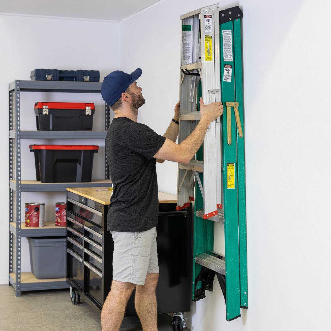 - WALL MOUNTED GARAGE HOOK: Organize all of your ladders on this heavy-duty metal storage rack!