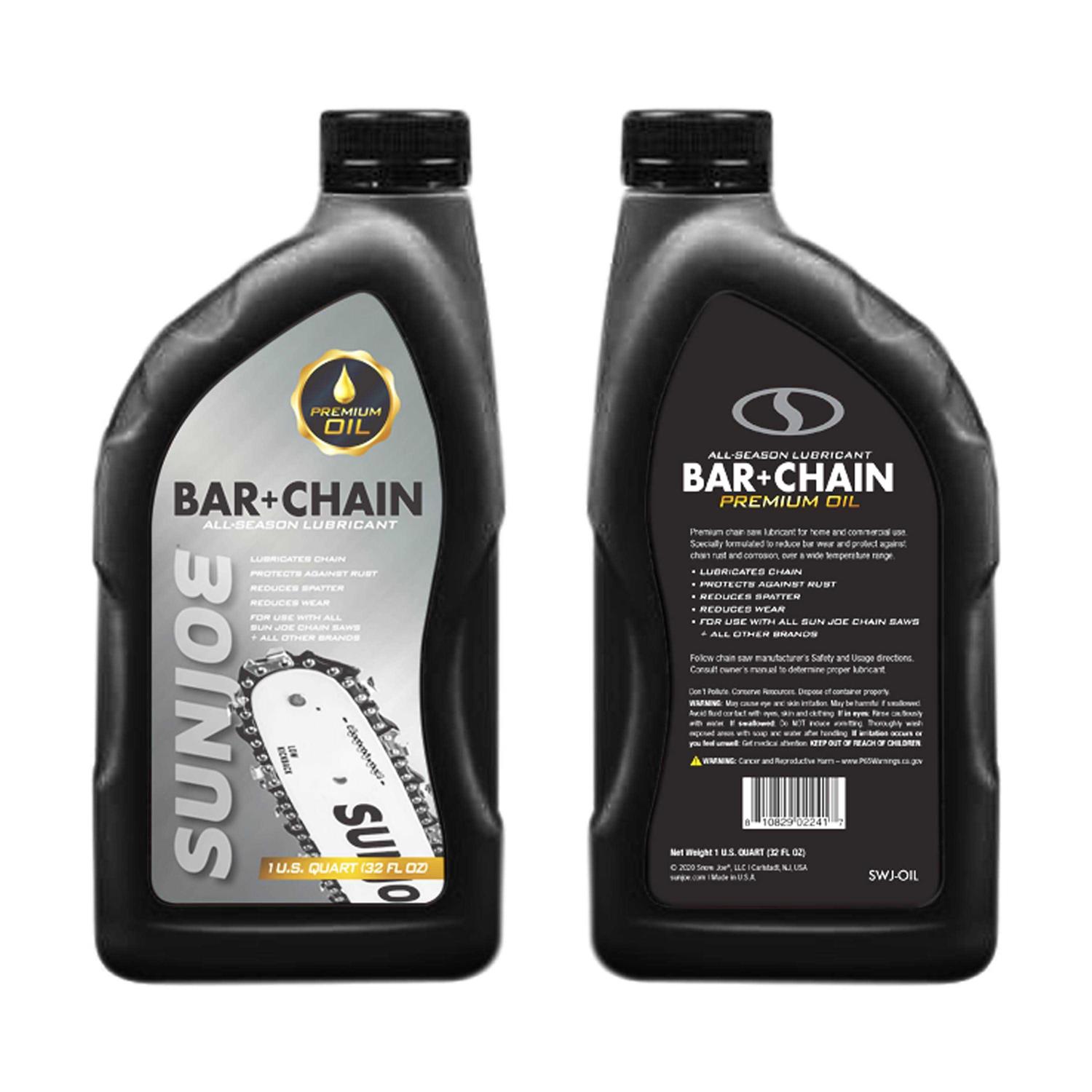 SUN JOE Saw Joe Bar, Chain + Sprocket Oil (model SWJ-OIL) is the cutting edge in high-performance bar and chain oil, reducing friction, prolonging the service life of bars, chains, and sprockets as well as resisting oil thrown off at high chain operating speeds. Prevents rust, resists high temperatures and flows freely at low temperatures for reliable, all-season performance. Not suitable for internal engine use.