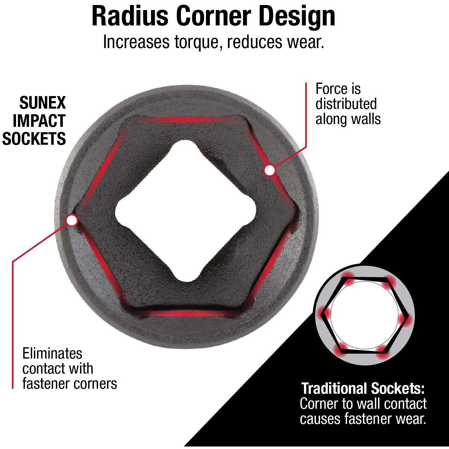 Forged from the finest chrome molybdenum alloy steel – the best choice for strength and durability. Radius corner design – to extend the life of fasteners. Ideal for working in tight areas. Included in a heavy duty blow molded case. Fully guaranteed No doubt Sunex tools offer one of the most complete and toughest Impact Socket lines around. This 1/2″ drive 6 point extra deep impact socket set is designed to tackle the toughest jobs with solid durability and keeps them pounding job after job. Also each socket features a radius corner design causing the socket to grab the sturdy wall of the fastener instead of grabbing the corners resulting in less wear on the fastener.