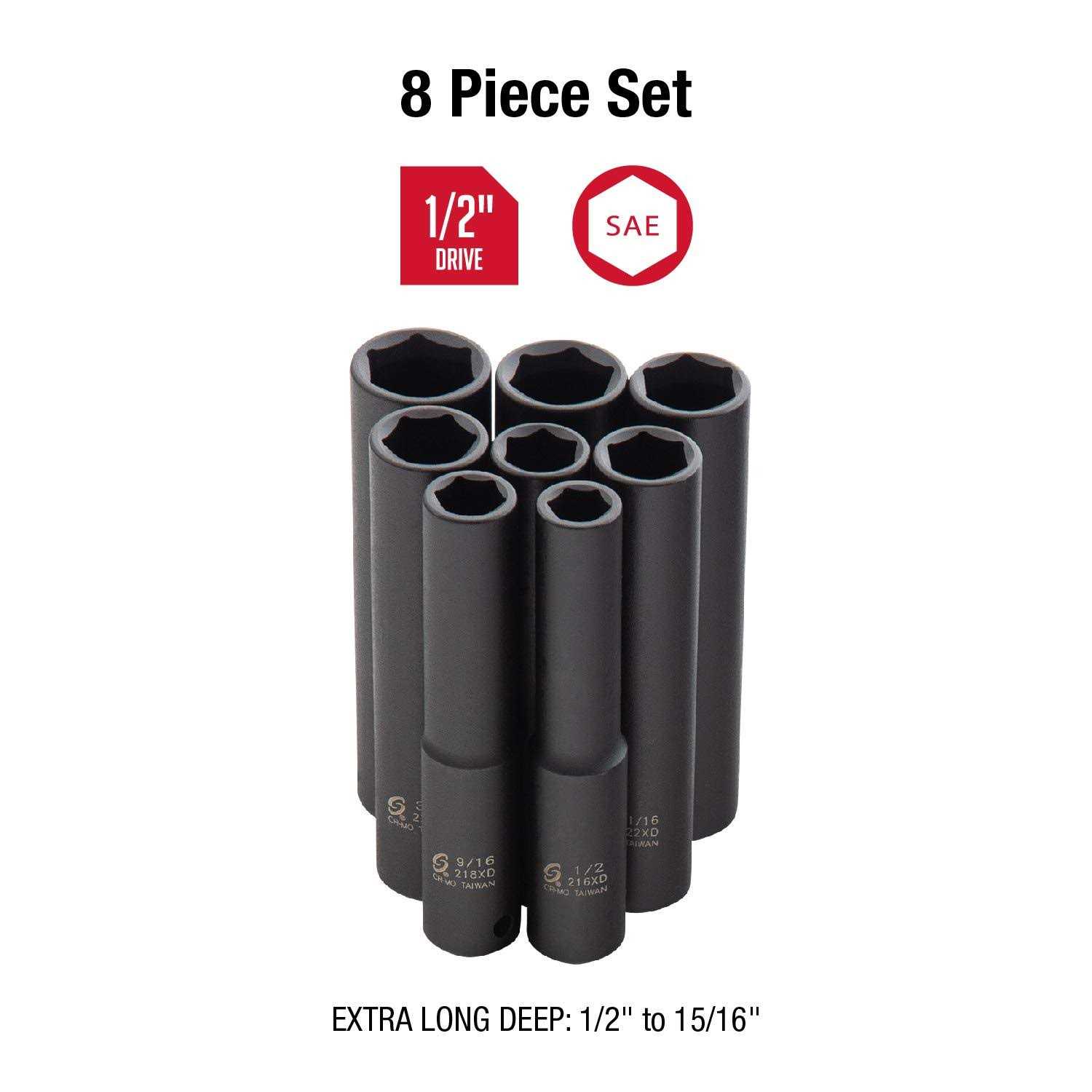 Sunex 2848 8 Piece 1/2″ Drive Extra Deep SAE Impact Socket Set