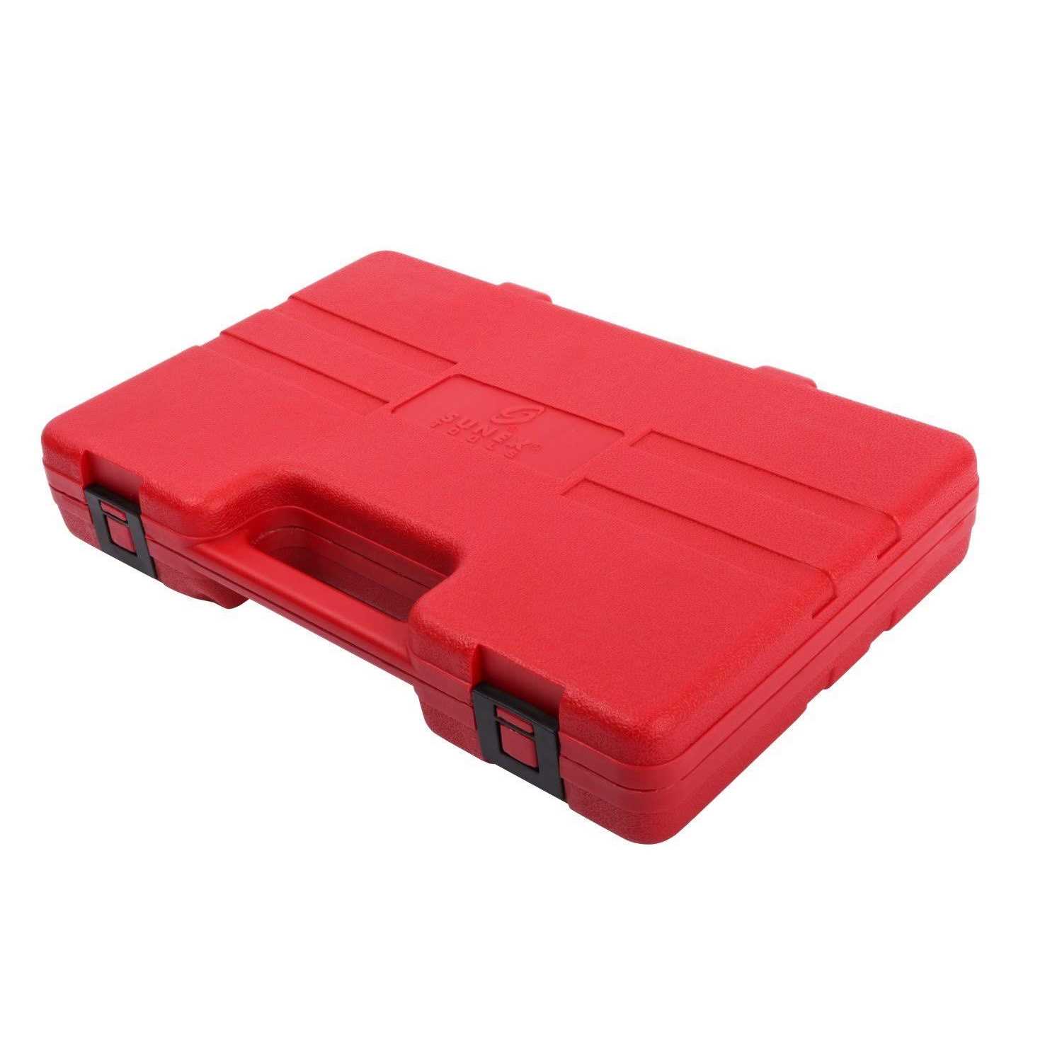 Molded Case. Manufactured from impact grade CR-MO alloy steel for maximum strength. 6-Point sockets with radius corner design extends the life of the fasteners. Features common sizes used in many everyday maintenance applications. Laser etched and roll stamped dual size markings to ensure permanent socket identification. Durable blow molded case for simple organization and storage. Meets ASME specifications for quality | Sunex 3342 | 42 pc.