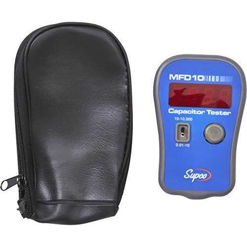 Capacitors by Supco. Details: The high quality Supco Capacitor Tester (MFD10 ) provides the fastest measurements of capacitor values with one hand operation. The Capacitor Tester has accuracy ± 5% and range of 0.01 to 9,999 MFD and includes soft carying case for easy transport of device and test clips. Please be aware that it is recommended to use saftey equipment and to disconnect the appliance from all utilities prior to any service or repair.