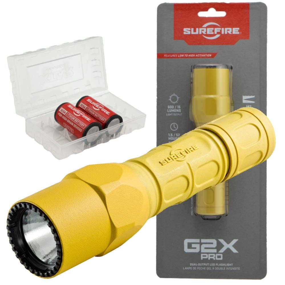 Surefire G2X Pro 600 Lumens LED Flashlight Yellow w/ 2 Extra CR123A +Battery Box, Men’s
