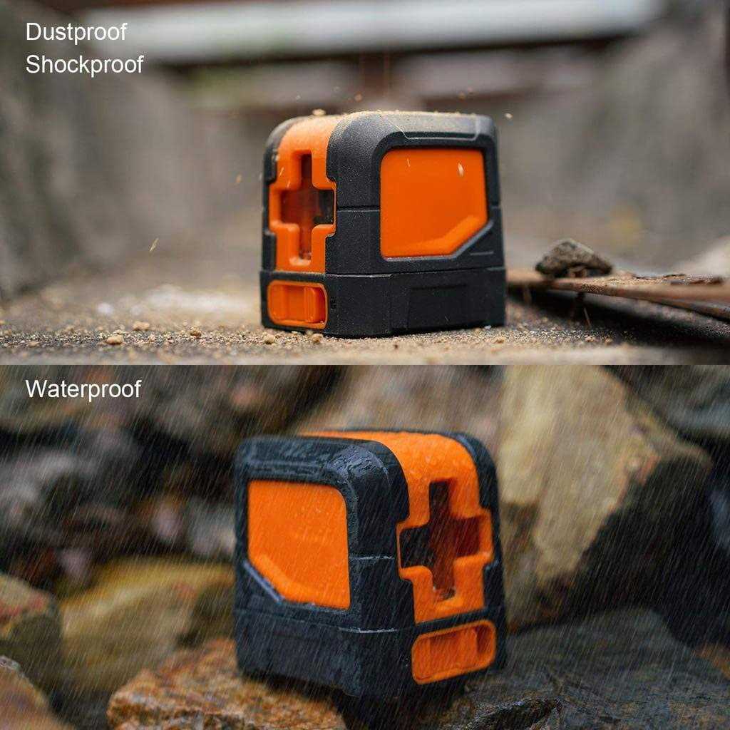Self-Leveling & Manual lasers 2 Seconds Quick Pendulum Leveling System High-Precision Laser Level & Visibility Durable & Long-lasting SMART PENDULUM LEVELING SYSTEM – Press the top power button or open the pendulum lock to activate laser beam, it auto-levels when placed within 4 degrees of horizontal/vertical; If out of range, the laser beams will flash to alert; Pendulum locked to start manual mode, can lock lines for alignment to other angles. FLEXIBLE MOUNTING DEVICE – The laser level can be mounted onto a tripod or affixed to most metal surface using the included magnetic bracket, support you to turn the laser level around at 360 degree, project lines in any position or angle or adjust the height from the tripod. CROSS-LINE MODE – Emits and projects a laser cross line onto flat surfaces with high accuracy of ±1/8 of an inch at 30 Ft, works the best indoors; Ideal for tile alignment, wall studding, windows, doors, etc. Class II laser product, Output 1mW. HANDY AND EASY TO USE – Compact and lightweight for easy gripping, but large enough to sit stably; Equipped with a nylon zippered pouch, can prevent dust for storage and protects the level and L base against impact/scratching. Only can be used indoors, no recommended for using outdoors.
